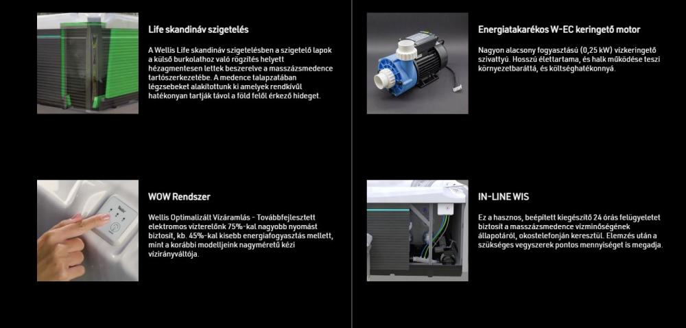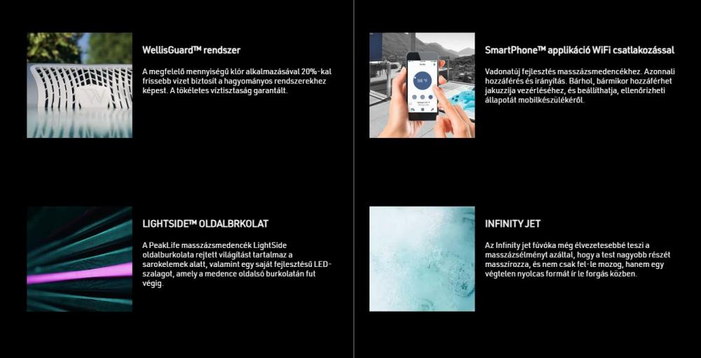 Felszereltségi szintek közötti különbségek: Deluxe kivitel: Alapfelszereltség Premium kivitel: Alapfelszereltség + Világító jetekkel, integrált WIS-sel Premium Plus kivitel: Alapfelszereltség + Világító jetekkel, integrált WIS-sel, hőszivattyú szettel, hőszivattyú tárolós okoslépcsővel