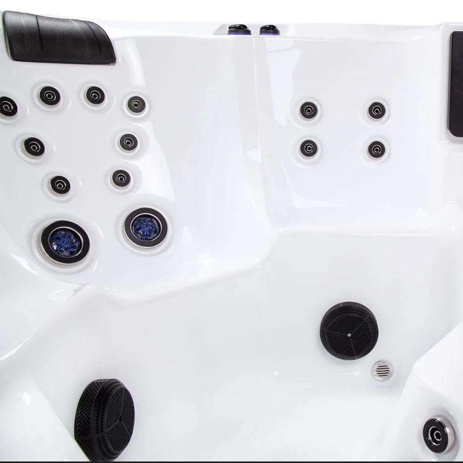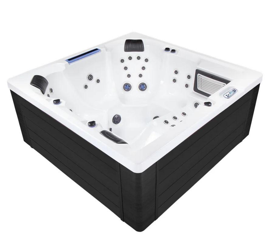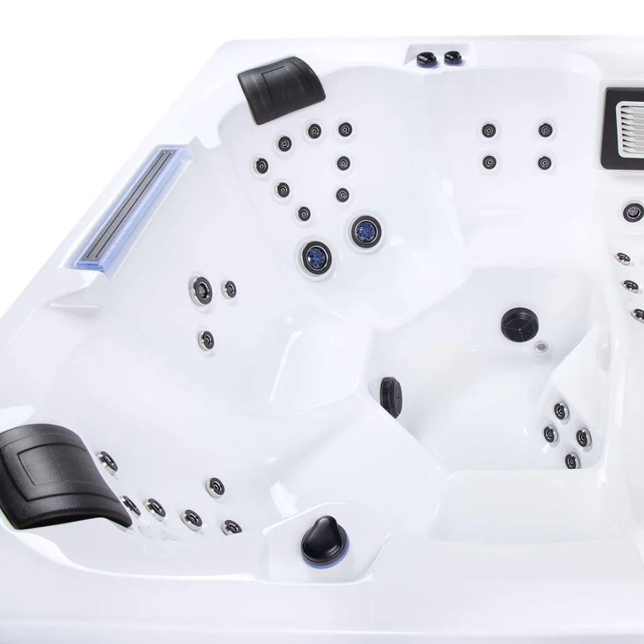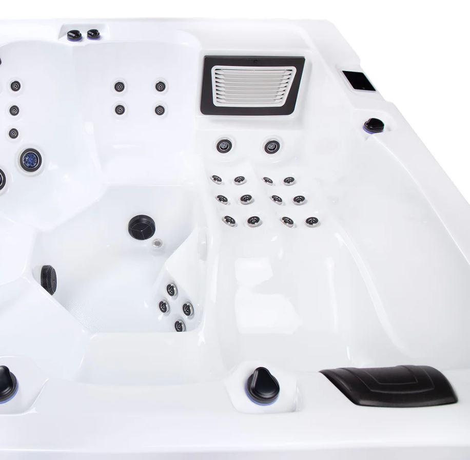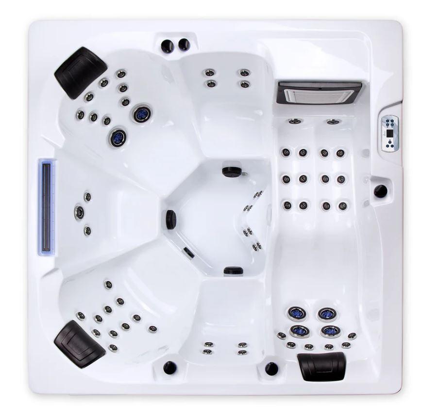 A Waterworld Deluxe jakuzzi a kényelem és az innováció tökéletes egyensúlyát kínálja, 1 fekvőhelyet és 5 ülőhelyet tartalmaz. 64 hidroterápiás fúvókával, lenyűgözően megvilágított vízeséssel és olyan fejlett funkciókkal, mint az ARTIC MAX szigetelés és az UV-C vízfertőtlenítés, ez a fürdő kivételes wellness élményt nyújt. A karcsú Arctic White akril dizájn és a szürke HorizontSide™ világítószekrény párosítva időtálló eleganciát biztosít minden környezetben.